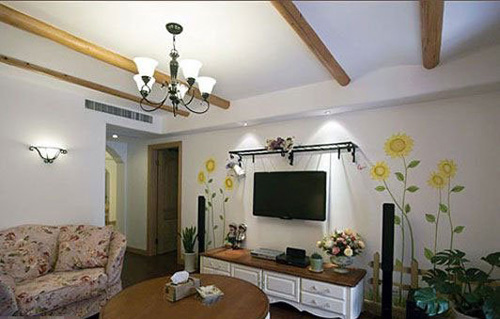 田園風(fēng)格軟裝飾搭配技巧:2、手繪壁紙