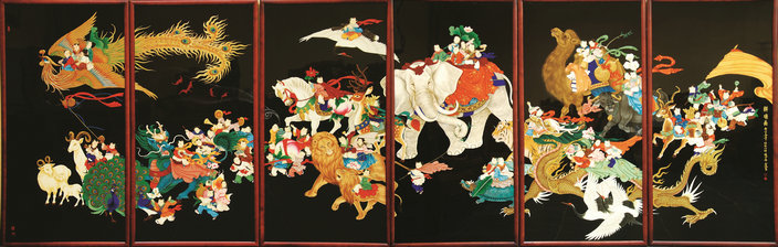 在類別上,平遙推光漆器有實(shí)用品、陳設(shè)品之別,在實(shí)用品中,像辦公裝修、賓館酒店裝修裝飾等工裝,和家庭裝修裝飾、別墅裝修裝飾等家裝中的漆柜、漆箱、條案、茶幾等都應(yīng)有盡有,既實(shí)用還有很高的藝術(shù)造詣,而陳設(shè)類的屏風(fēng)、漆畫、圓盤等都有很高的工藝價(jià)值,歷史上,平遙漆器中,不管是漆箱、漆柜等實(shí)用品,還是漆畫、屏風(fēng)等陳設(shè)品,都受到了國內(nèi)外消費(fèi)者的青睞。
