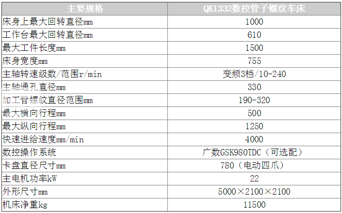 QK1332型數控管螺紋車床是針對石油、化工、冶金行業輸油管、鉆桿、套管的螺紋加工要求專業化設計制造。機床采用雙卡盤夾緊方式,數控系統自動控制,可******加工各種內、外螺紋,并具有普通數控車床的功能。