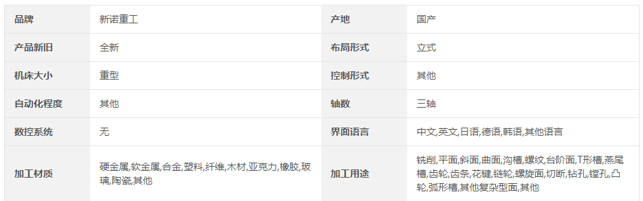 新諾精工產品系列:立式升降臺銑床|臥式升降臺銑床|萬能升降臺銑床|萬能回轉頭銑床|數控銑床|端面銑床|立式加工中心|臥式加工中心|龍門加工中心|