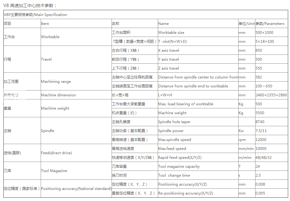 產品型號:V8P高速加工中心|V10P高速加工中心|V10B高速加工中心|V11P高速加工中心|