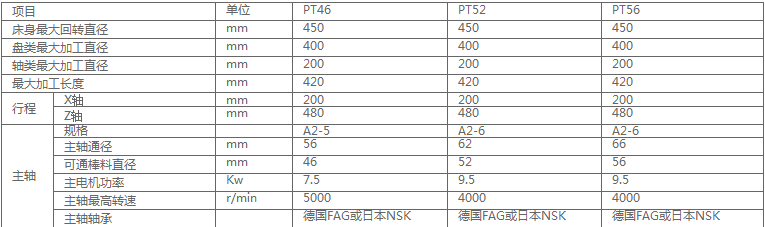 PT46/52/56DW 刀塔式尾座式數控車床參數